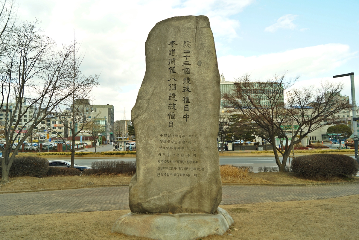 수원 올림픽공원은 '88 서울 올림픽' 개최를 기념하기 위해 1987년 만들었습니다. 총 면적은 3만m²이며, 울창한 소나무숲과 산책로, 조각물, 테니스장 등 다양한 시설이 있습니다. 공원 안에 '제24회 서울올림픽 개최기념탑'이 있습니다. 이 탑 뒤에 총 23개 경기 종목 중에 경기도가 개최한 종목이 나옵니다. 1988년에 열렸던 서울올림픽의 추억을 되새겨 볼 수 있죠.