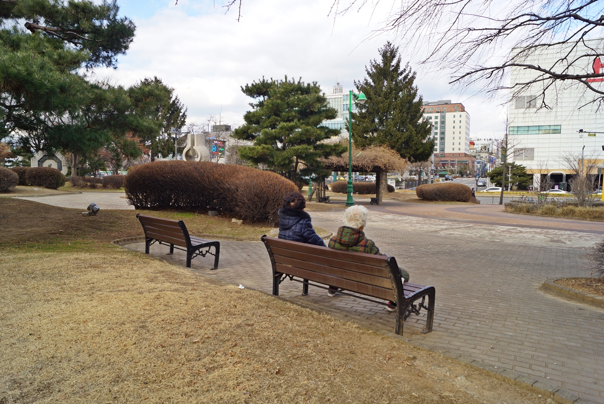 어르신 두 분이 도란도란 얘기를 나누고 있습니다. 날씨가 따뜻해지면 공원은 시민들로 가득할 겁니다. 특히 봄에는 목련꽃, 벚꽃이 흐르러지게 피기 때문에 봄꽃 나들이로 인기가 많은 공원입니다. 아직은 꽃샘추위기 시샘을 부리고 있지만 꽃이 피는 봄날이 곧 오겠죠?