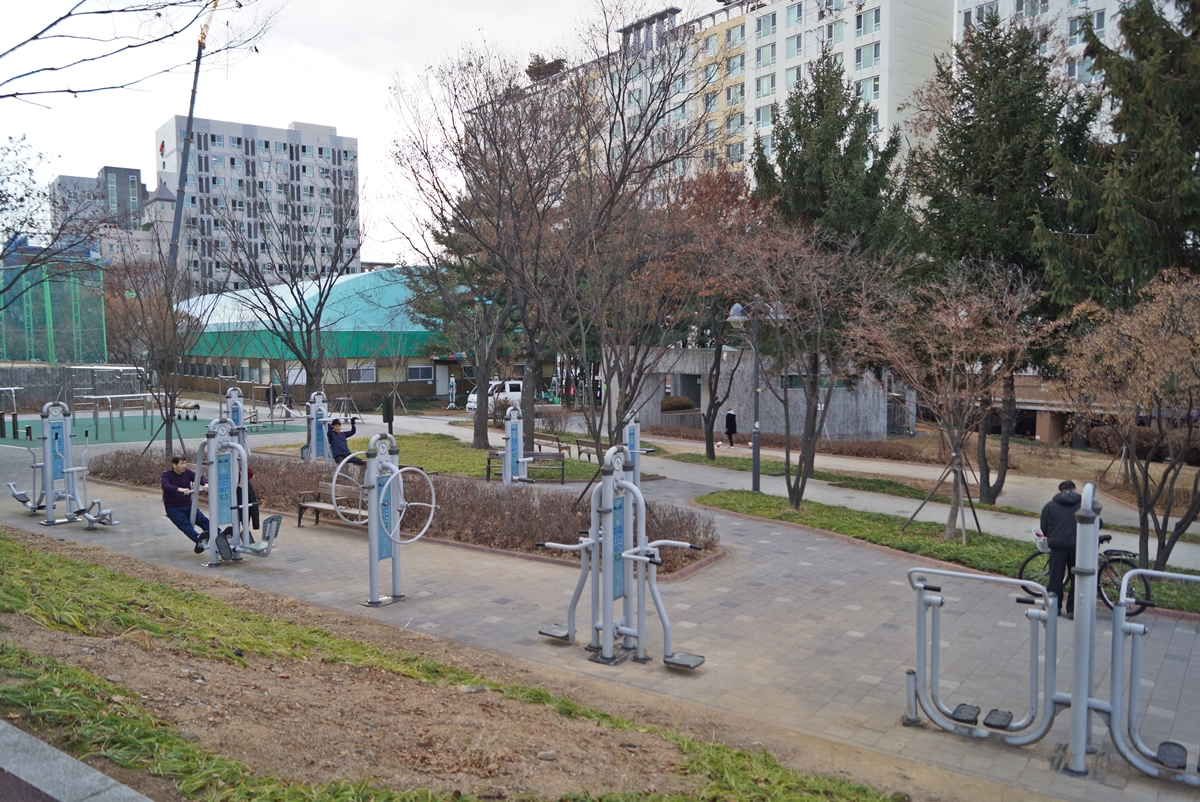 운동기구도 많습니다. 시민들이 열심히 운동하시네요. 새해 목표 중 운동 열심히 하고 다이어트 한다고 마음먹었던 분들 지금 계속 실천하고 계시나요? 올림픽공원은 테니스장, 농구장도 있어서 마음만 먹으면 언제든지 와서 운동할 수 있습니다.