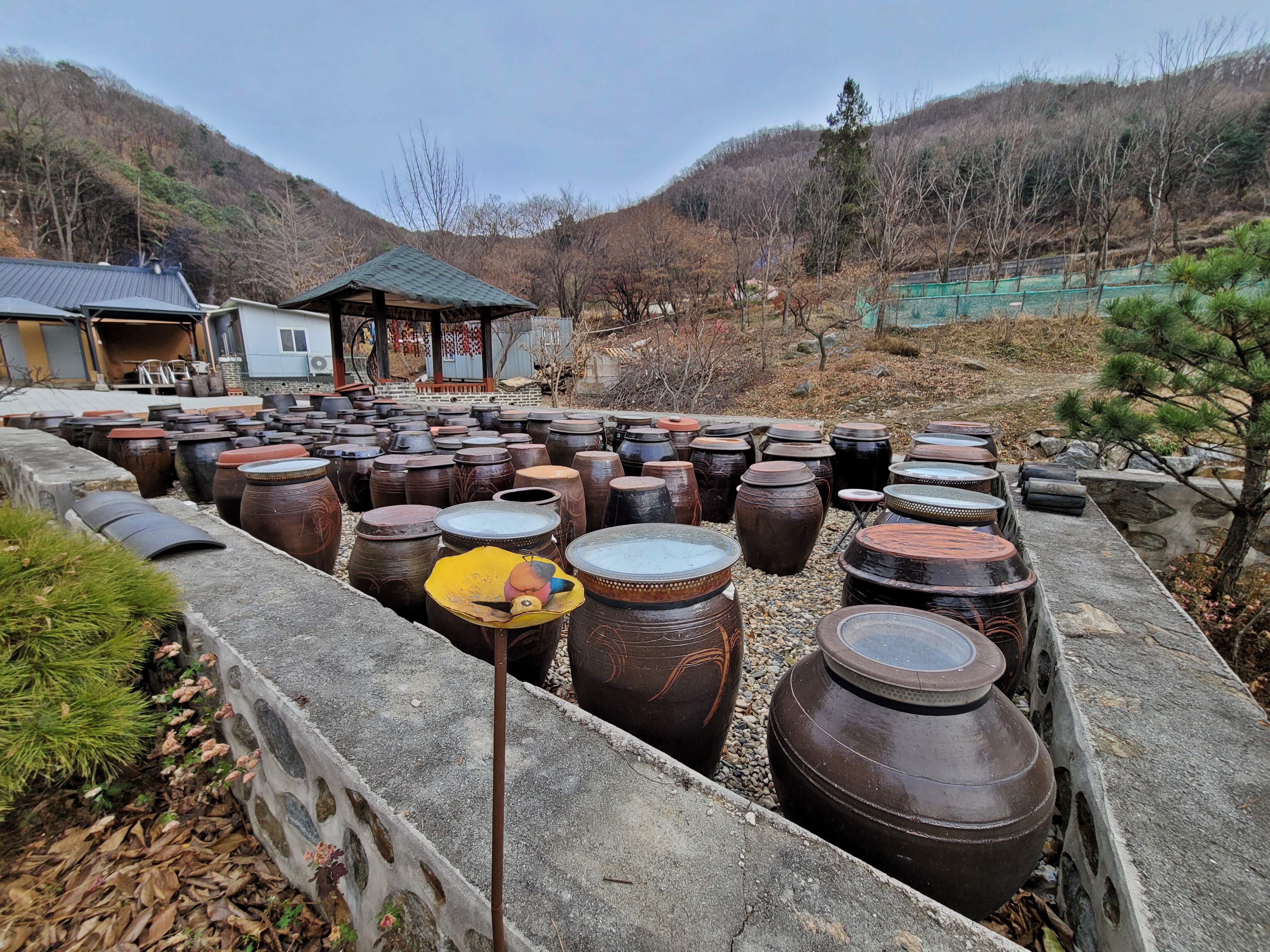 사찰 외부를 돌다 보니 대웅전 오른쪽에 장독대가 있습니다. 장독대는 고추장, 된장, 간장이 익어갑니다.