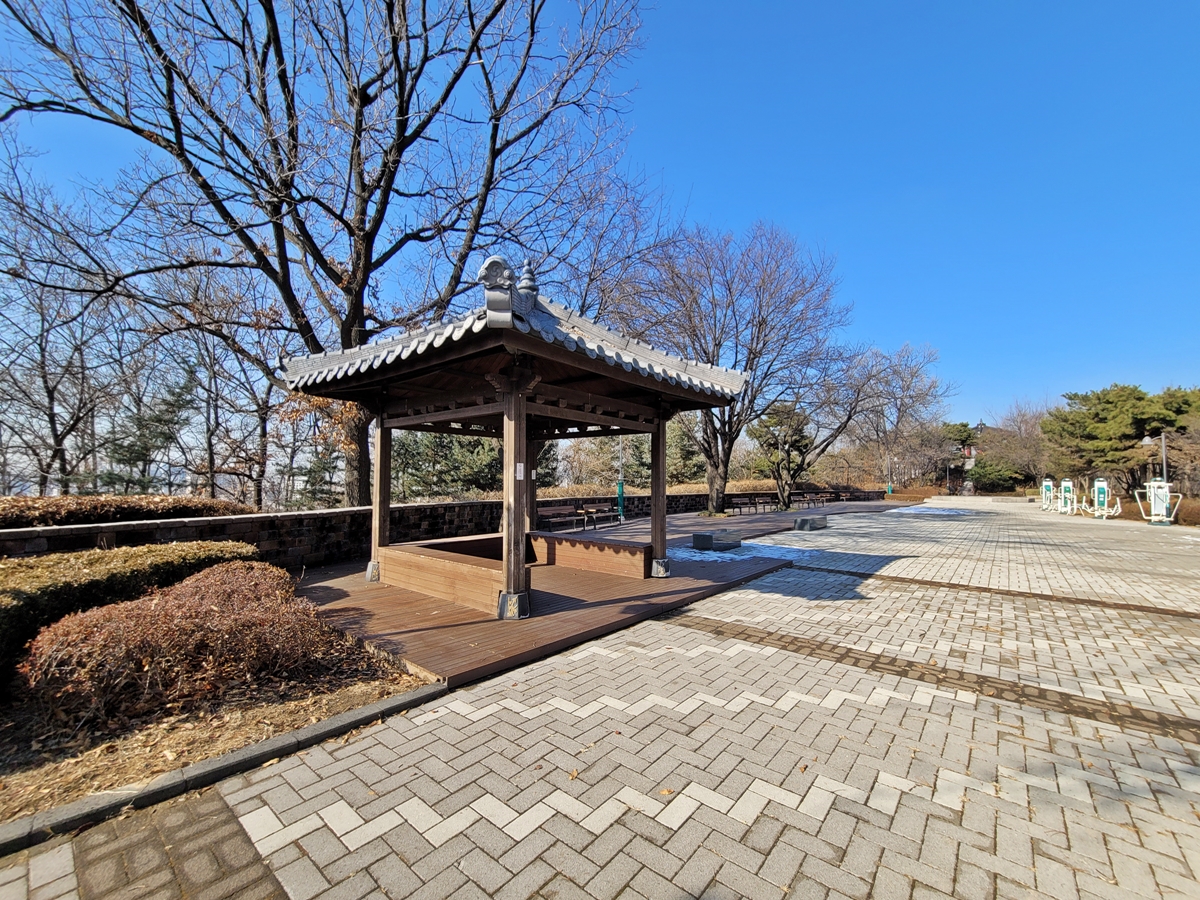 퉁소바위 공원에는 넓은 광장이 있고 정자가 있습니다. 정자 옆에는 각종 운동기구가 있고요. 전망 좋은 공원에서 운동하면 기분이 더 상쾌하겠죠. 이제 강추위가 풀리면 이곳에 운동하러 나온 시민들로 가득할 날이 머지않았습니다.