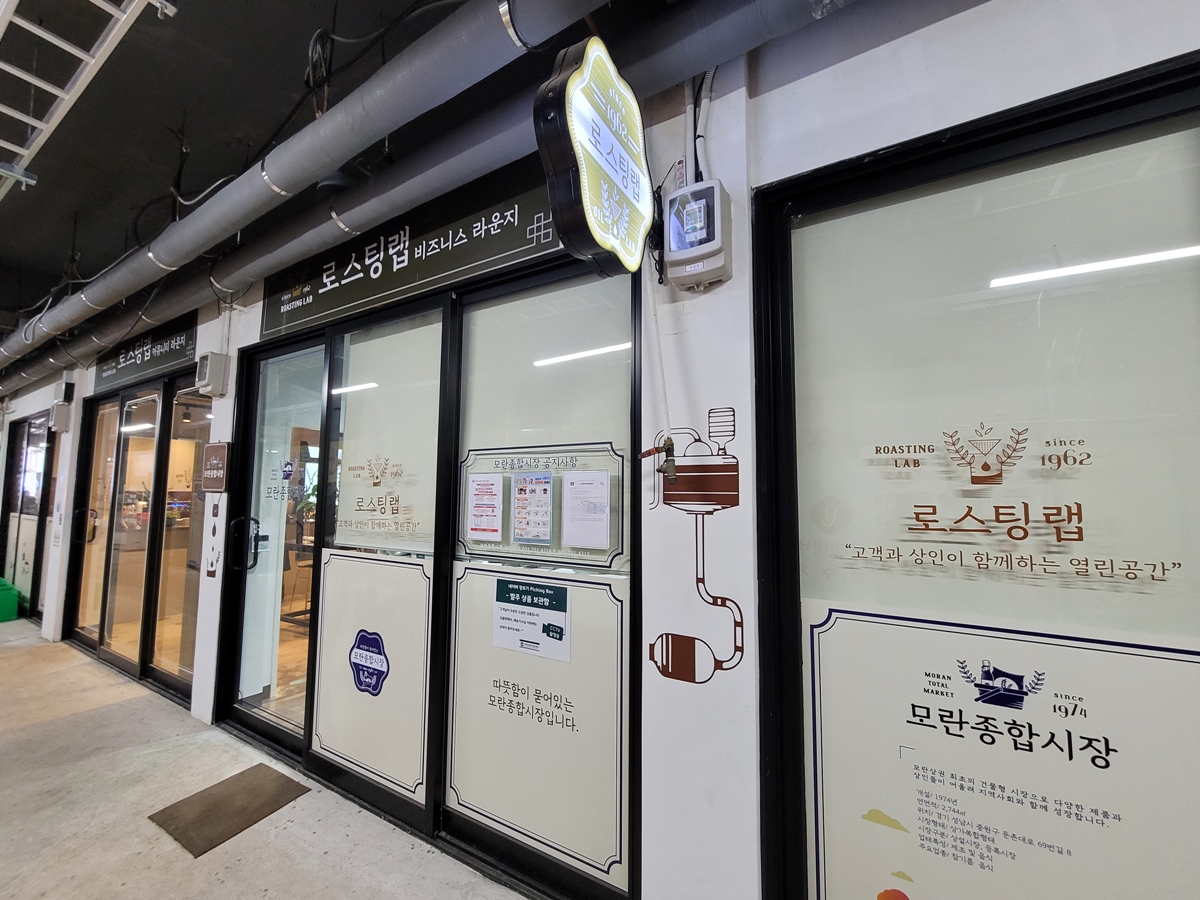 로스팅 랩은 경기도 공모사업으로 만들어졌습니다. 2019년 ‘경기도형 성남 모란시장 상권진흥구역 지원사업’에 당선되어 시작됐는데요, 모란시장과 기름시장 등 모란상권 일대를 활성화하기 위해 기름특화거리가 조성되었고요, 철판요리 야시장까지 개장되어 코로나19 속에서도 상권 활성화를 위해 많은 노력을 해왔습니다.