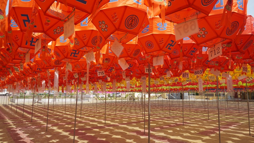 대광사 주차장에 차를 세우면 엘리베이터가 있습니다. 사찰로 올라가려면 걸어서 가도 되지만요, 엘리베이터를 타고 3층으로 올라갑니다. 전국의 수많은 사찰을 다녀봤지만요, 엘리베이터를 타고 사찰에 가는 곳은 대광사뿐이 아닐까 싶네요. 3층에 내리니 사찰 앞마당에 오색찬란한 연등이 어마어마하게 걸려 있습니다. 부처님오신날을 앞두고 저마다의 기원을 담은 연등을 보니 눈이 부시게 아름답습니다.