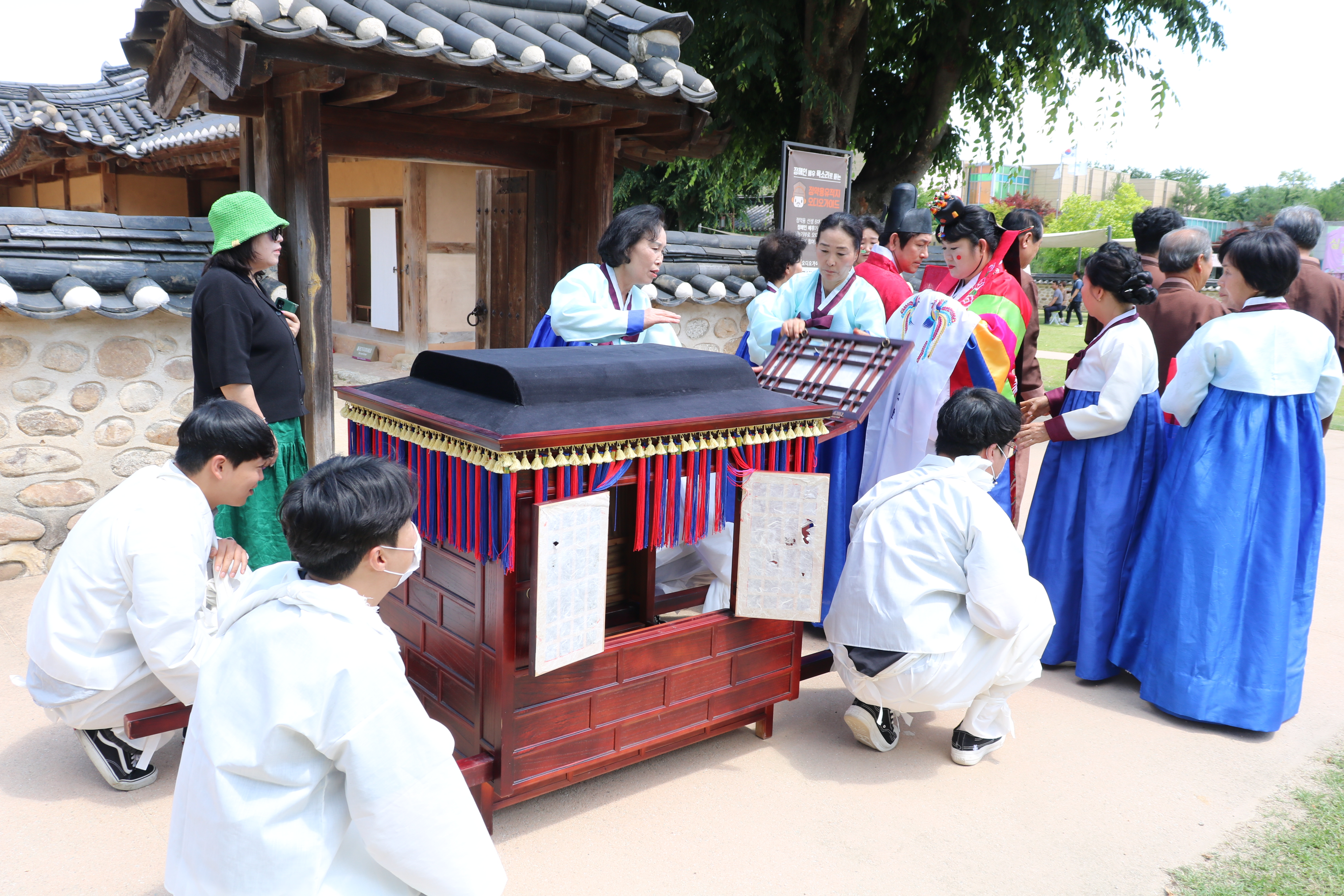 여유당 문을 나서니 가마가 대기하고 있습니다. TV 사극에서나 보던 가마를 신부가 타는 모습을 저는 처음 봤습니다.