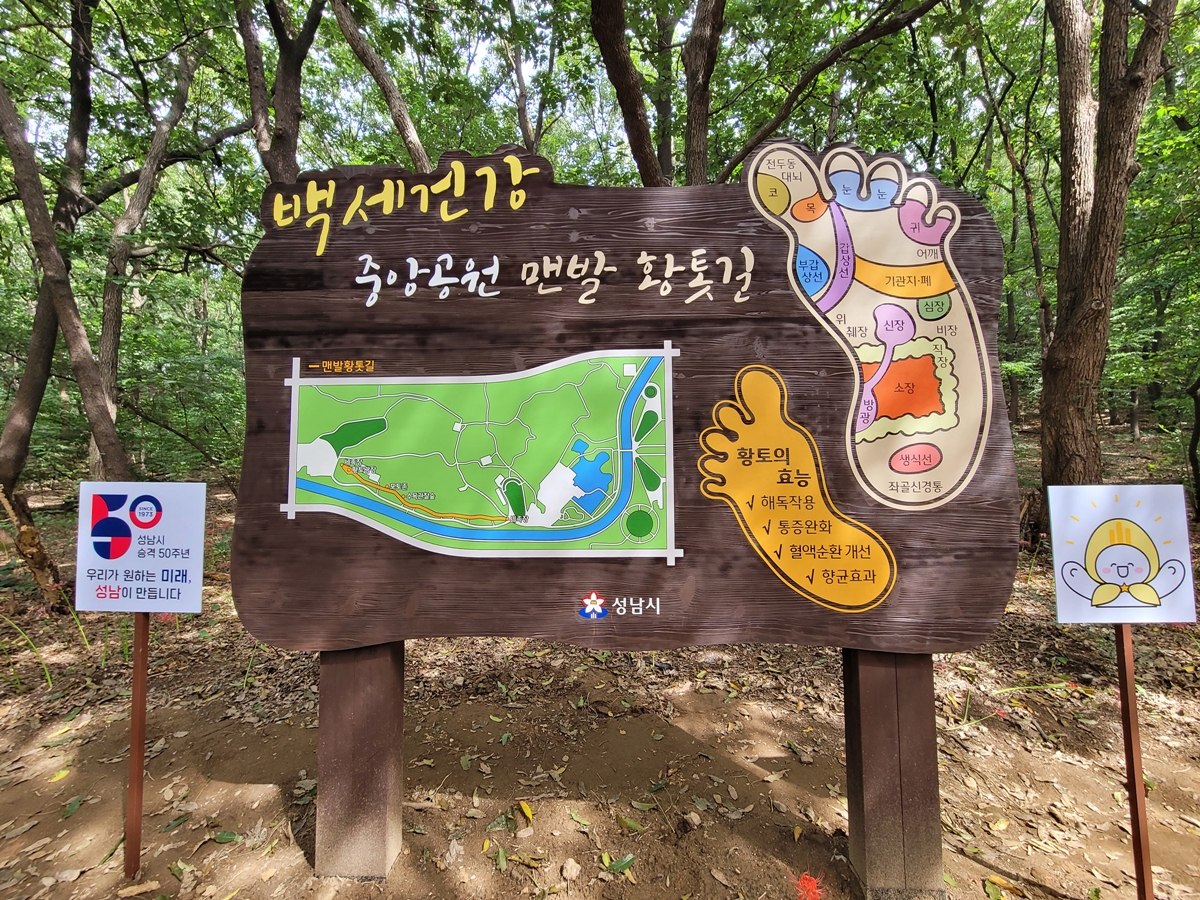 어느새 10월이 가까워옵니다. 하늘은 높고 청명합니다. 나들이하기 참 좋은 계절입니다. 경기도에는 어디에 살더라도 공원이 많아 나들이나 산책하기 좋은데요, 성남시는 분당중앙공원과 율동공원 등 6개 공원에 백세 건강 맨발 황톳길을 조성했습니다. 제가 분당중앙공원의 맨발 황톳길을 직접 가봤습니다.