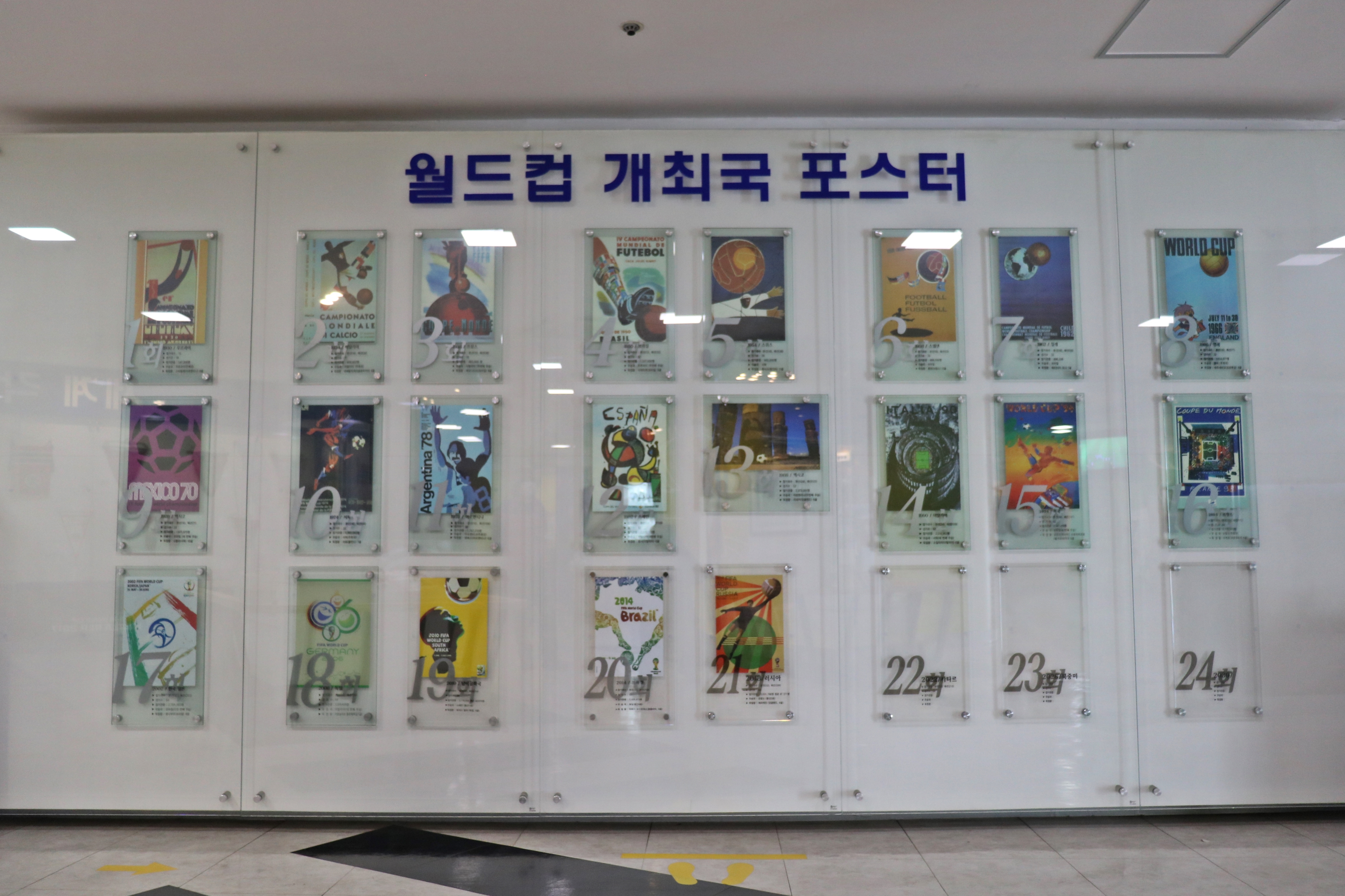 역대 월드컵 개최국 포스터도 있습니다. 포스터로 역대 월드컵 역사를 한눈에 볼 수 있습니다. 왼쪽 하단에 2002 한·일 월드컵 포스터도 있습니다. 올해 열리는 2022년 카타르 월드컵(22회) 포스터도 곧 걸리겠네요.