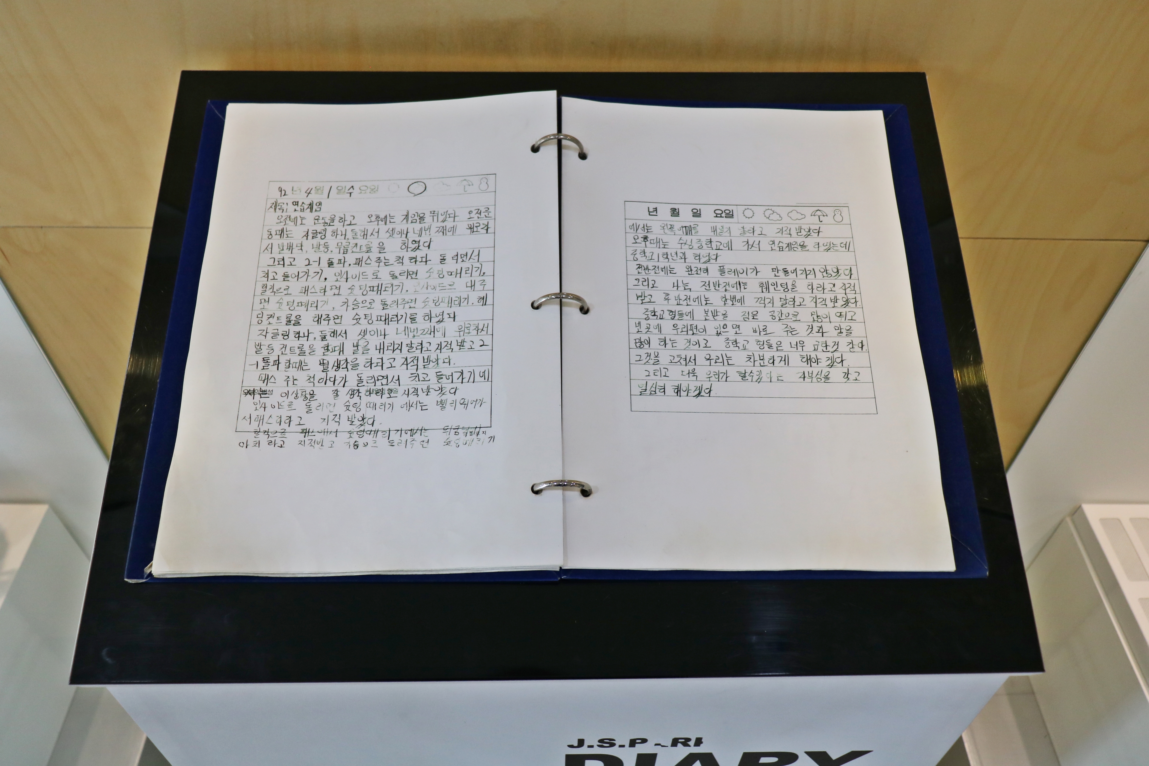 먼저 들러본 곳은 박지성관입니다. 국가대표로뿐만 아니라 유럽에서 큰 활약을 해서 대한민국 축구 위상을 세계에 알린 선수죠. 여러분 알고 계시나요? 박지성 선수가 수원의 아들이라는 것을요. 박지성 선수는 수원 세류초등학교, 수원 공고를 졸업했습니다. 그가 초등학교 때 축구선수를 하면서 쓴 일기가 전시되고 있는데요, 내용을 보니 축구 얘기가 많네요. 그만큼 어릴 때부터 축구 열정이 남달랐네요.