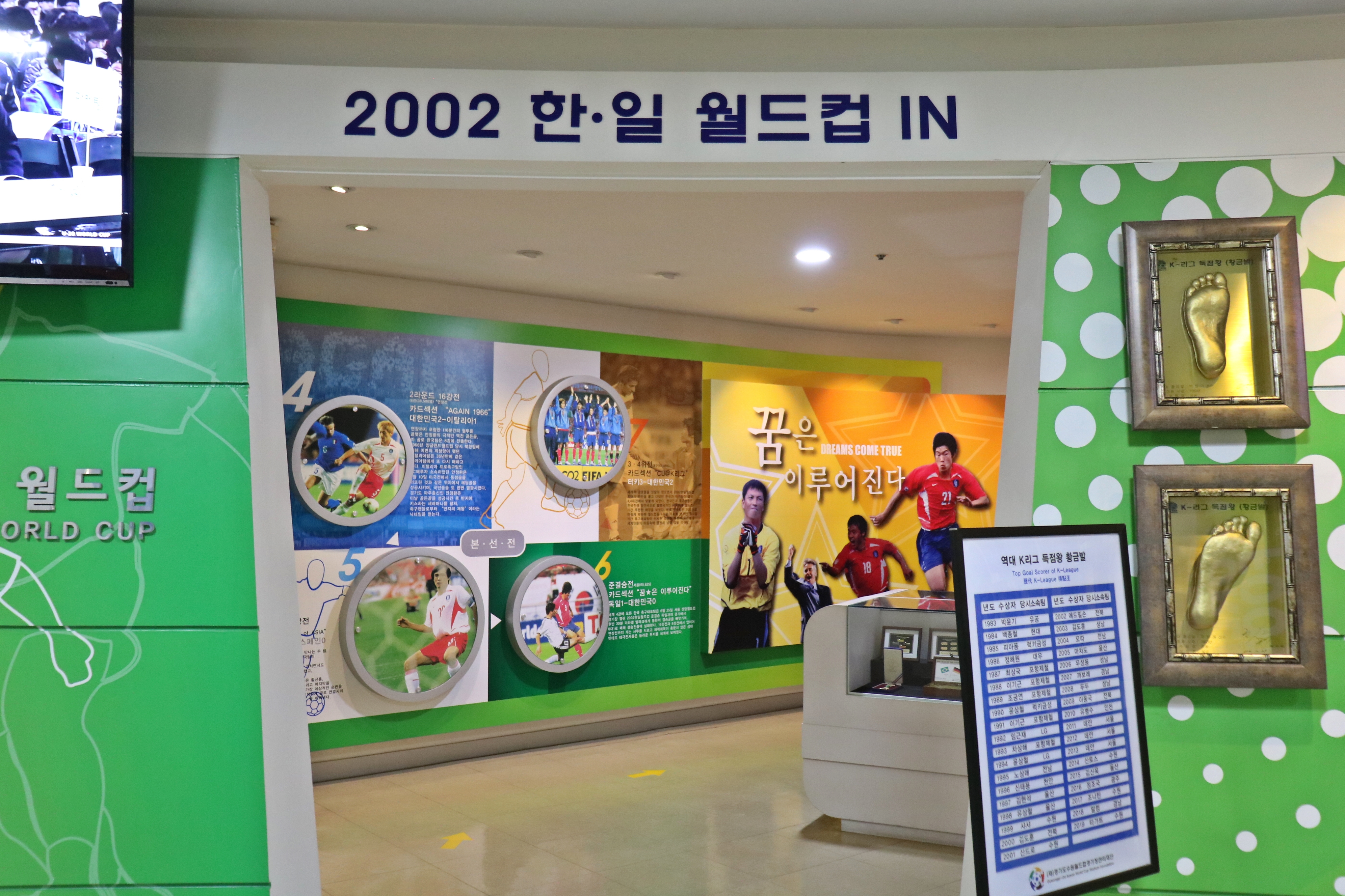 축구박물관에서 하이라이트라고 할 수 있는 2002 한·일 월드컵관입니다. 들어가는 문과 나오는 문이 따로 있습니다. 그때의 감동과 함성을 다시 한번 느낄 수 있죠. 그 감동은 영원히 잊혀지지 않을 한 편의 감동 드라마 같았죠.
