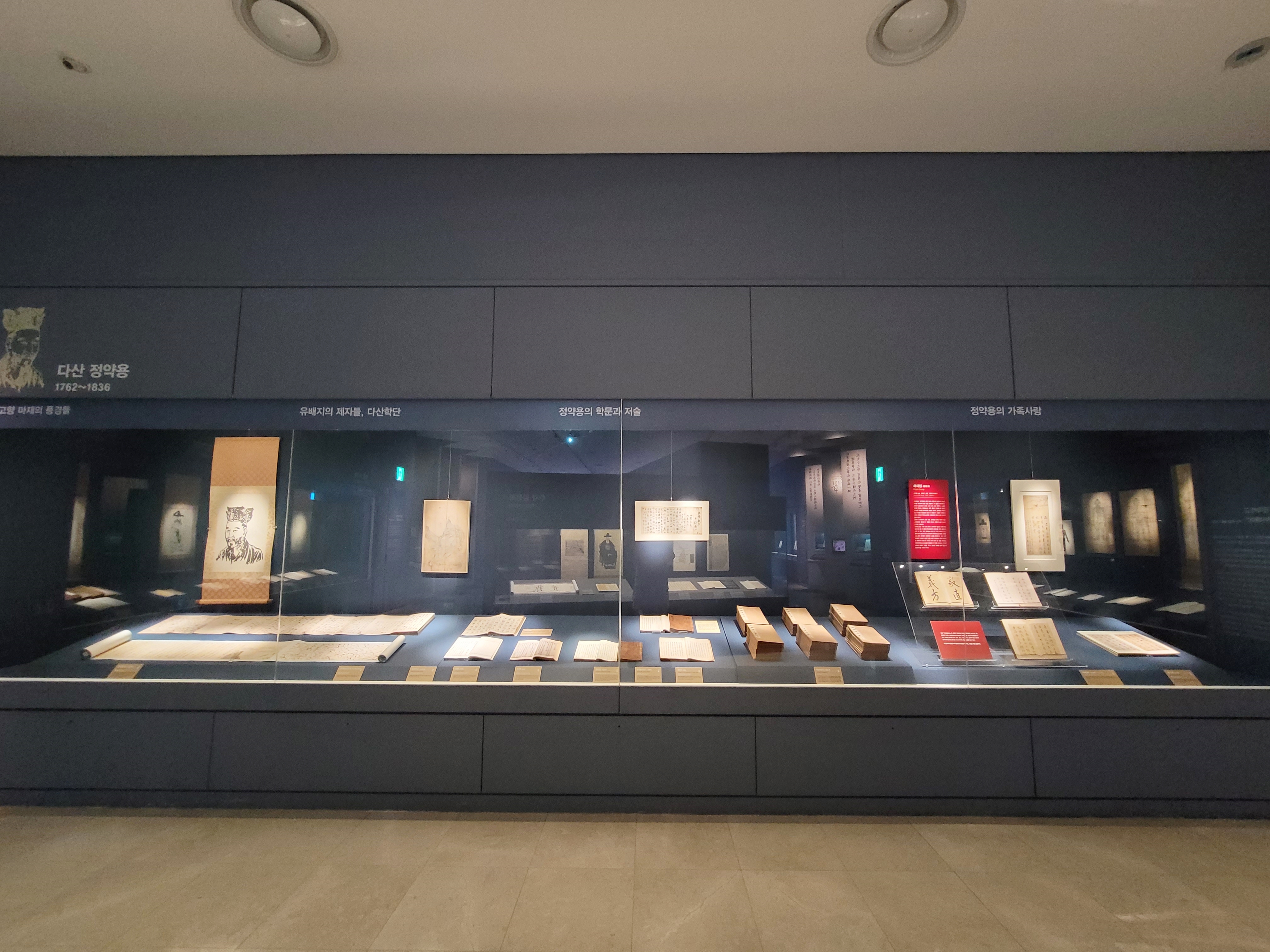 지난 12월 초에 갔을 때는 다산기념관이 내부 공사 중이었는데요, 이번에 가보니 새롭게 바꾸어 문을 다시 열었습니다. 유리벽처럼 생긴 곳에 다산 선생이 나오고 정약용에 관한 다양한 자료가 유리 스크린으로 나옵니다. 실학박물관 가는 길에 내부 공사를 마친 후 다시 깔끔하게 바뀐 다산기념관 등을 한번 들러보시기 바랍니다.