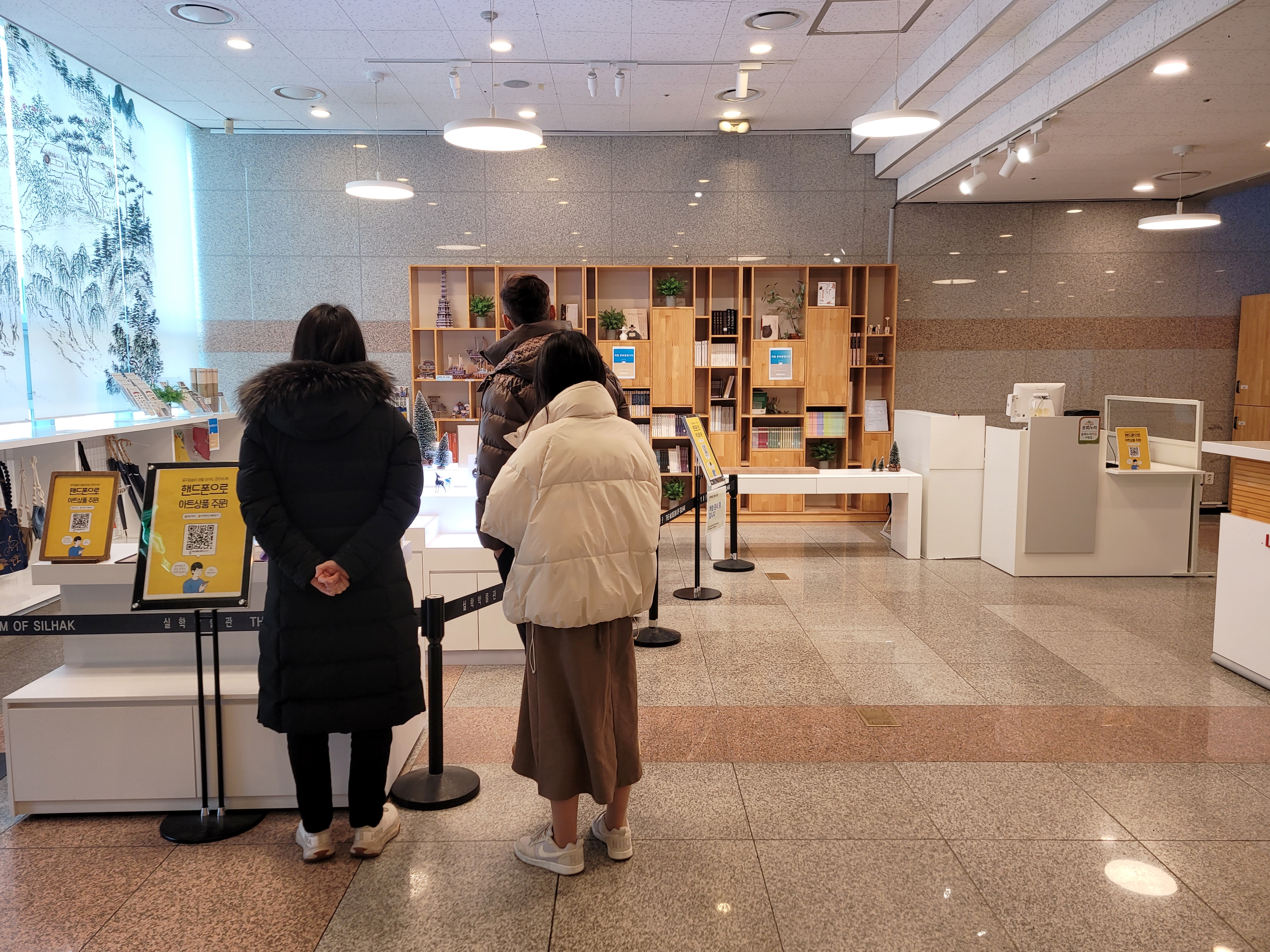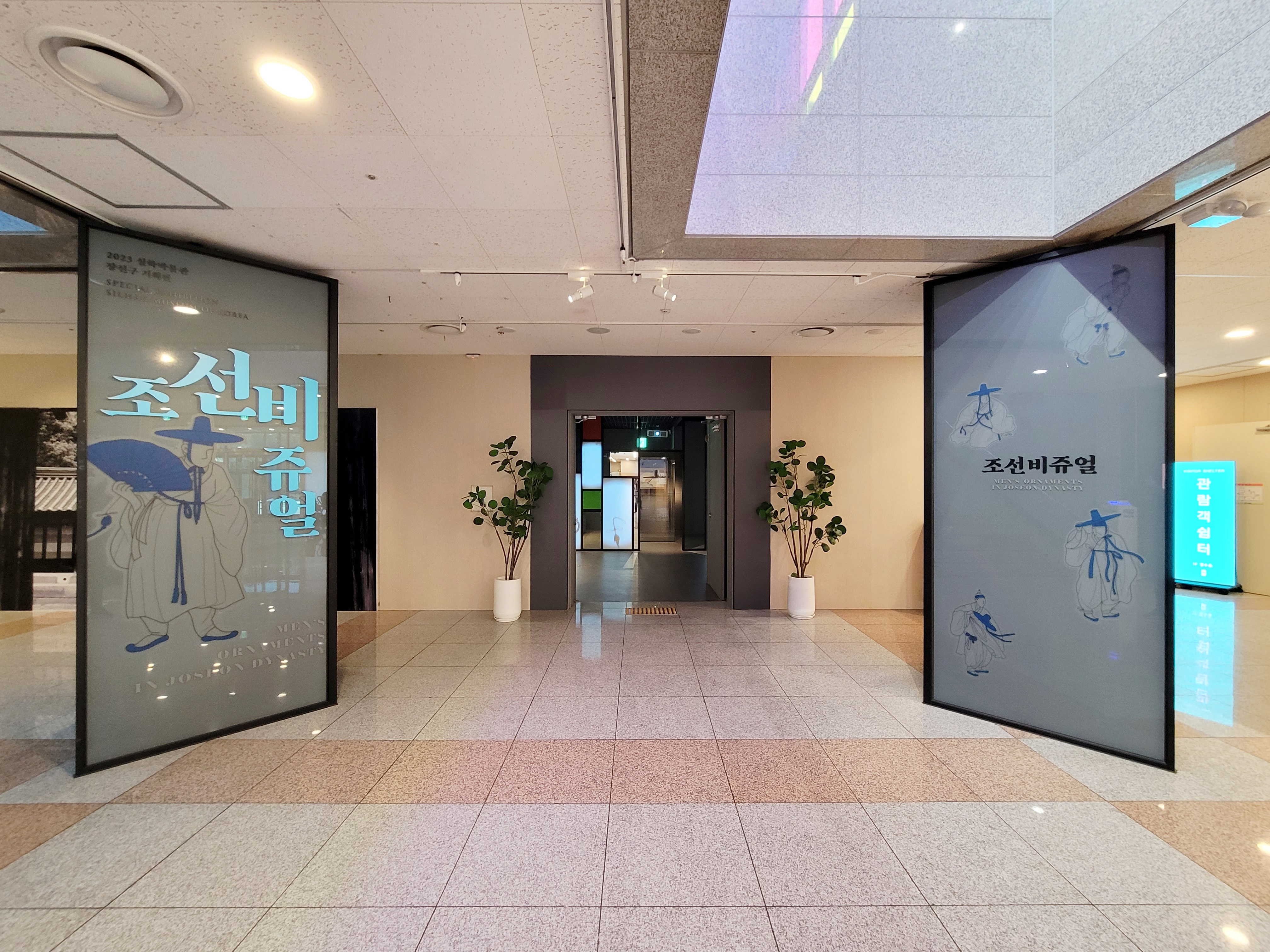 1층으로 들어서면 안내데스크가 있고, 좌측에 굿즈 판매점, 우측에는 기획전시실과 열수홀(강당)이 있습니다. 현재 기획전시실에서는 <조선 비쥬얼> 특별 전시회가 열리고 있습니다.