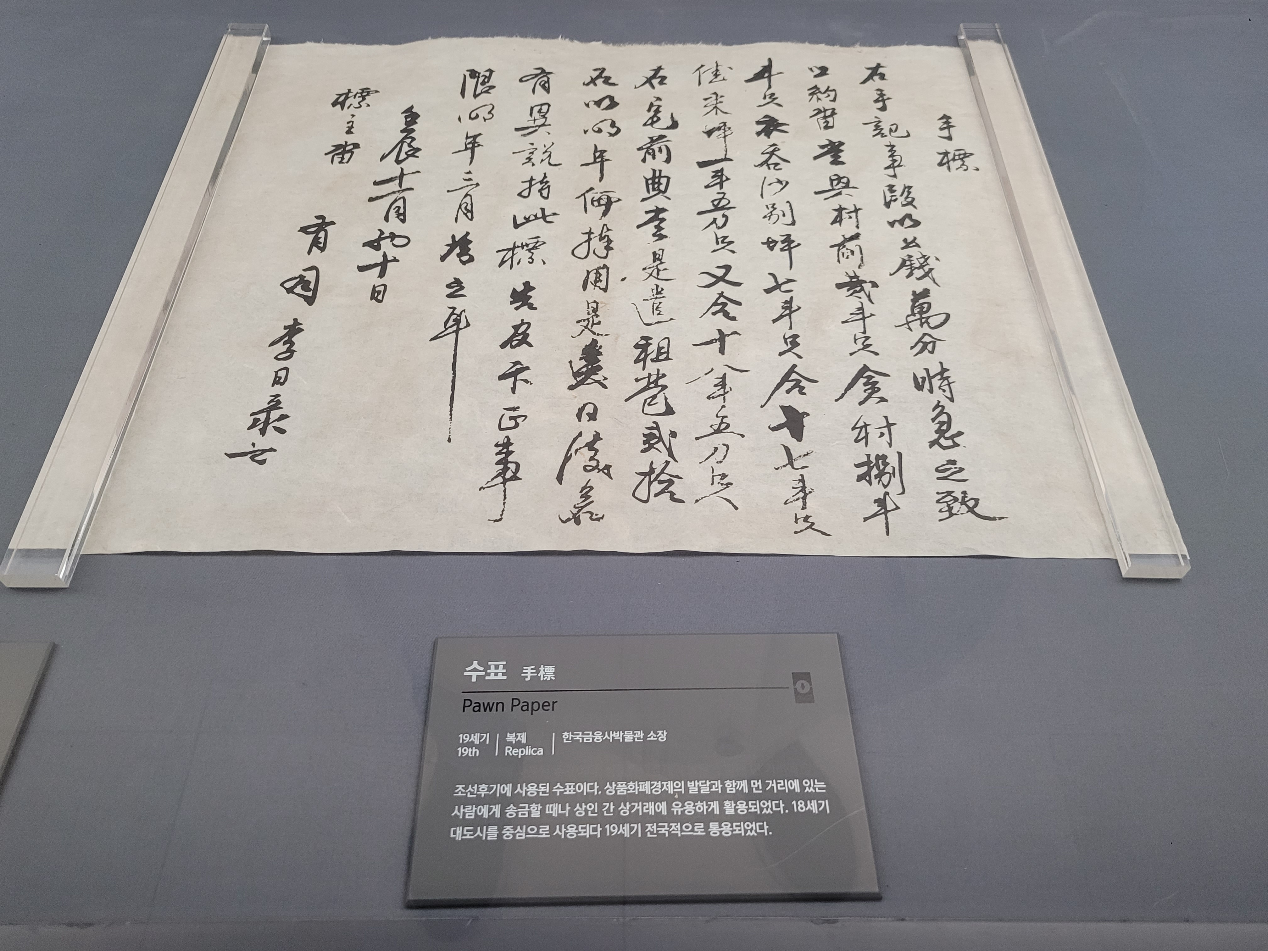 전시물이 많아서 다 소개할 순 없지만요, 반계 유형원의 「반계수록」, 이긍의 「연려실기술」, 조선 후기에 사용된 수표 등 진귀한 것들을 볼 수 있습니다. 이런 전시물을 통해 초기 실학자들의 사회·경제 문제에 대한 개혁론을 공부할 수 있습니다.