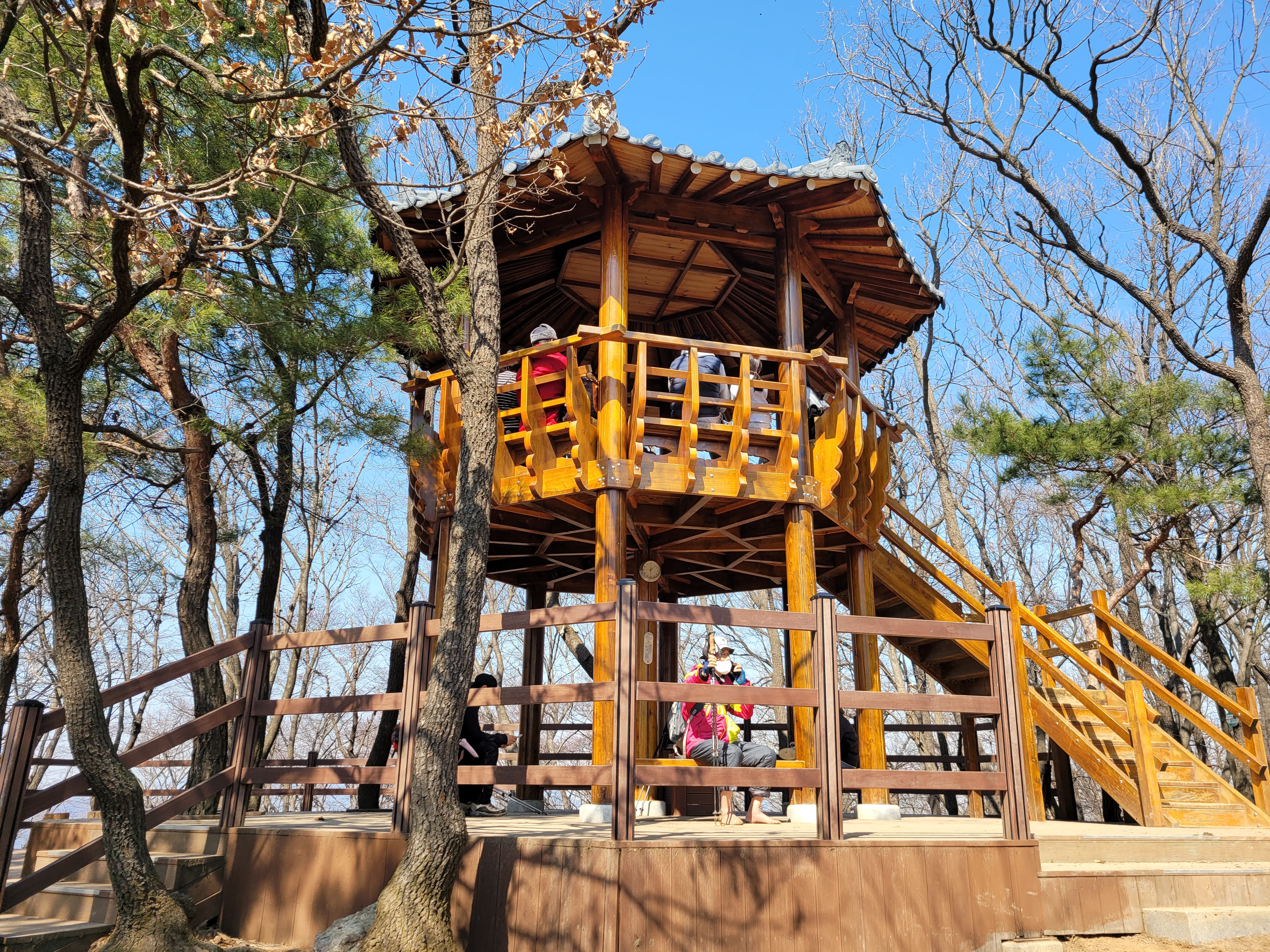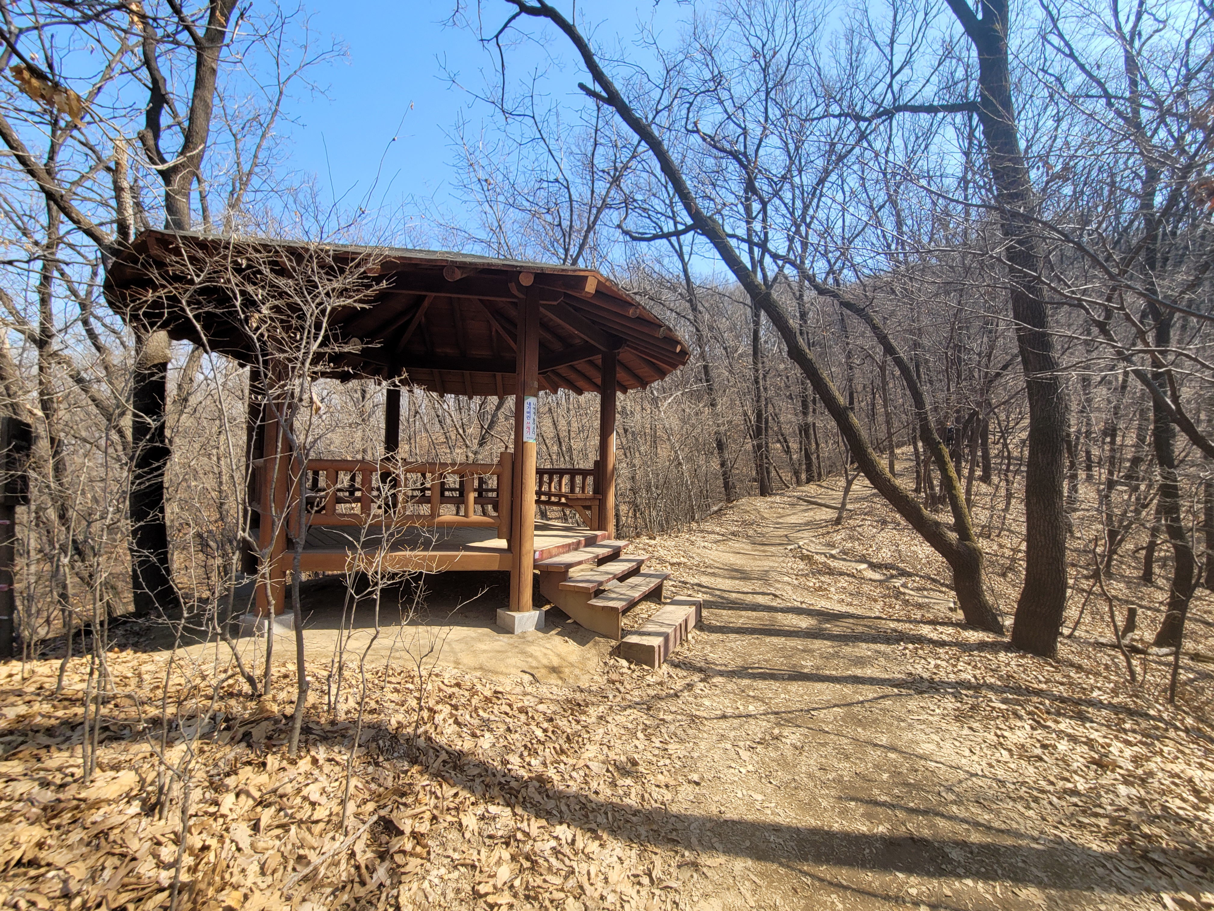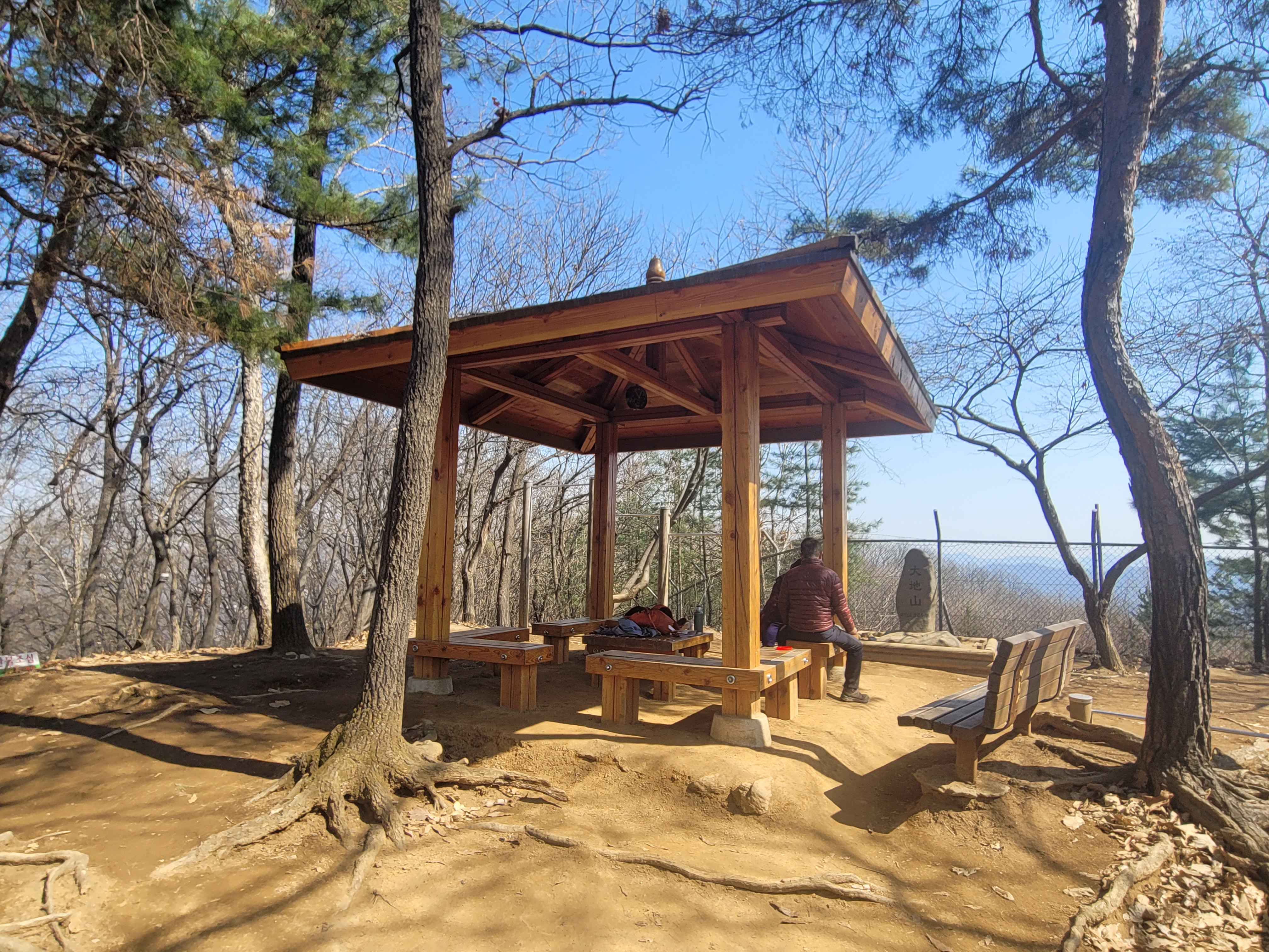 첫 번째 정자에 도착했습니다. 여름에는 산림이 우거져 따가운 햇볕을 가려주고 시원한 산바람이 더위를 식혀주는 고마운 쉼터입니다. 불곡산에서 대지산까지 가는 동안 이런 정자가 여러 곳에 있습니다.
