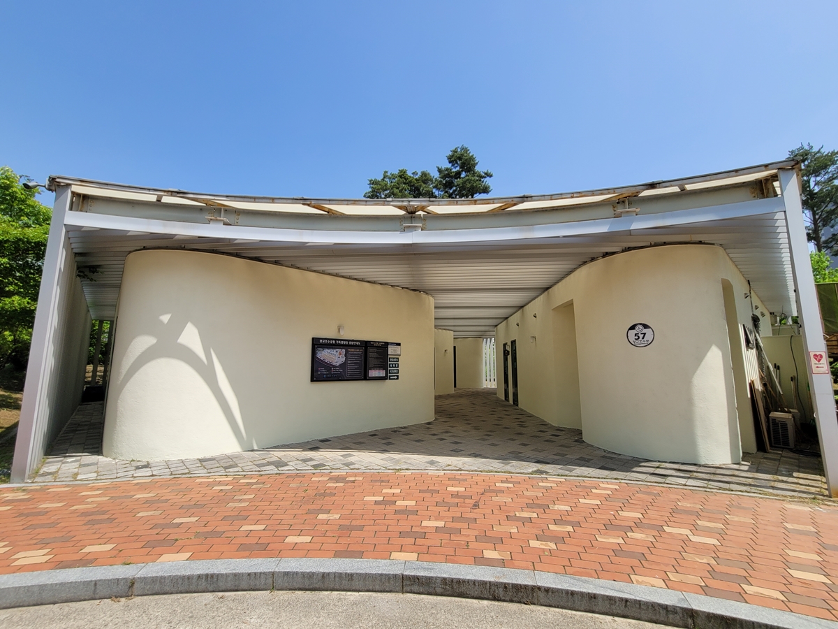이제 식기 세척장, 샤워장, 화장실 등 공용 공간으로 가보겠습니다. 공용 공간은 캠핑장 가장 안쪽에 있습니다. 이곳에 관리사무실도 함께 있습니다.