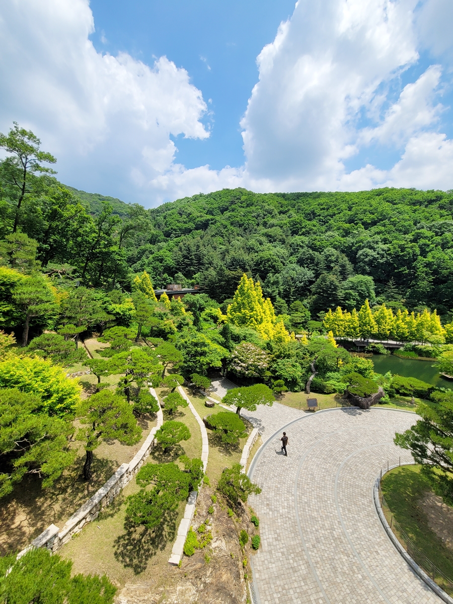 옥상에서 화담숲 일대가 한눈에 보입니다. 제가 갔던 날 날씨가 가을처럼 높고 푸르고 뭉게구름도 떠다녀 한 폭의 그림처럼 보였습니다.