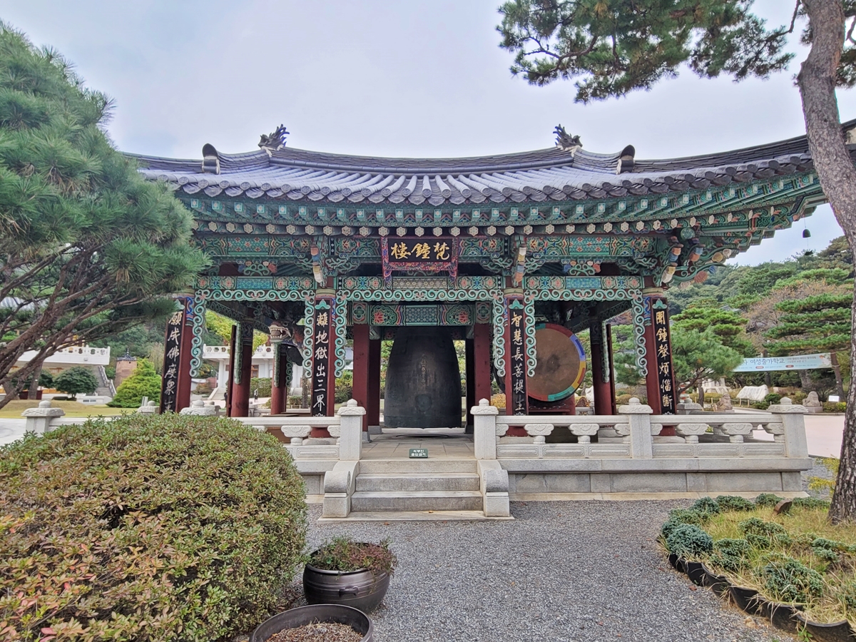 석가탑 오른쪽에 범종루가 있습니다. 봉녕사 범종각에는 범종, 법고, 운판, 목어의 사물(四物)이 모두 갖추어져 있습니다. 불교 의식에 사용되는 4가지 법구인 사물(四物)이 다 있는 곳이 드문 데요, 봉녕사는 4가지가 다 있네요.
