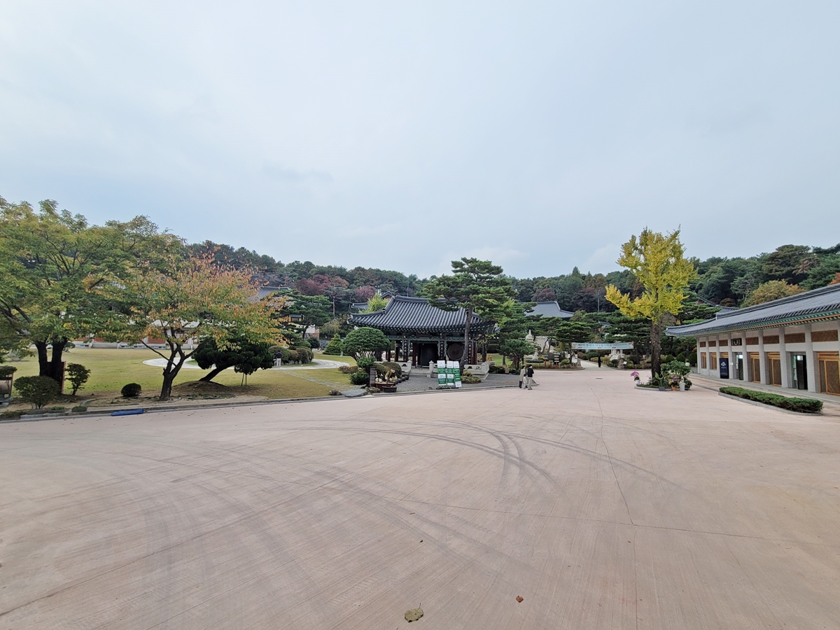 봉녕사 주차장은 아주 넓어서 일반 승용차와 대형 버스까지 주차할 수 있습니다. 제가 법회가 있는 일요일 방문했는데도 여유가 있었고요, 주차료는 무료입니다. 주차장을 둘러싸고 있는 나무들도 가을 색으로 갈아입고 있습니다.
