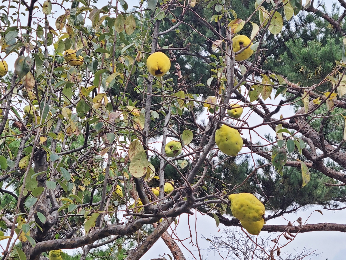 무지개 분수 옆에 모과나무가 있는데, 모과가 주렁주렁 열렸습니다. 모과나무는 향기가 좋아서 집안에 두고 방향제로 사용하기도 하지만, 차나 잼, 청으로 만들어 먹으면 기관지와 목 건강에 효능이 좋다고 합니다.