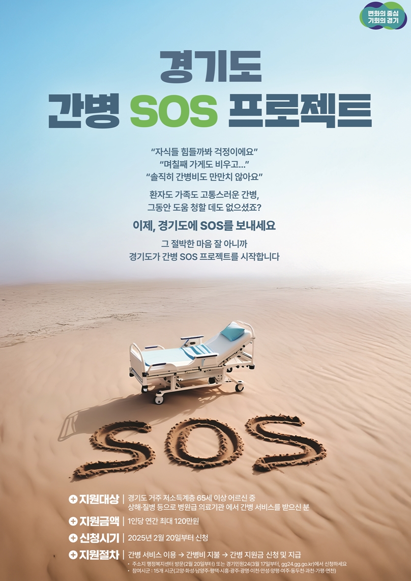 경기도가 이러한 문제를 해결하기 위해 전문 간병 서비스를 지원하는 ‘간병 SOS 프로젝트’를 운영하고 있습니다. 어떤 프로젝트인지 소개하겠습니다.