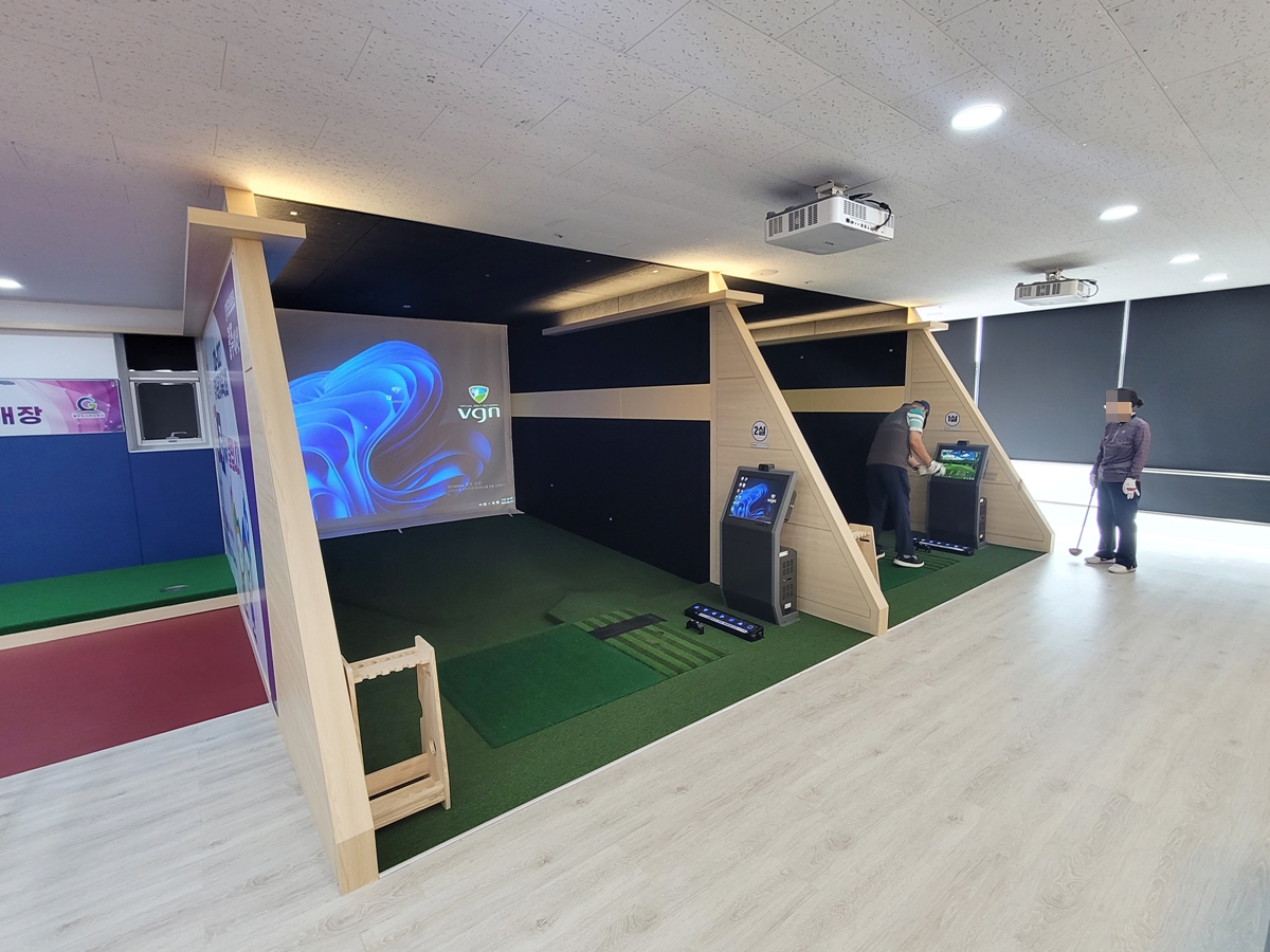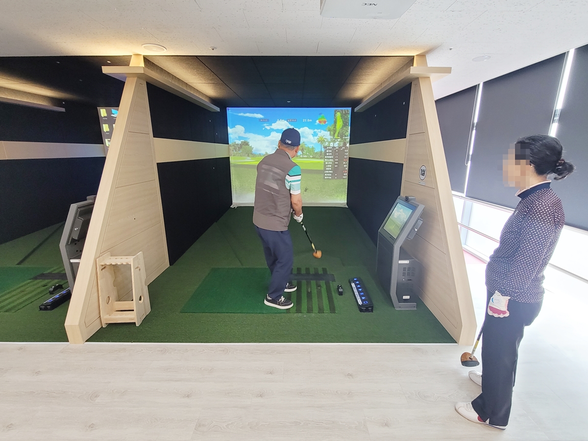 제가 갔던 날 스크린 파크골프를 즐기러 온 시민들이 있었습니다. 저는 예약 시간보다 30분 정도 빨리 가서 먼저 온 사람들이 치는 모습을 잠시 지켜봤습니다.