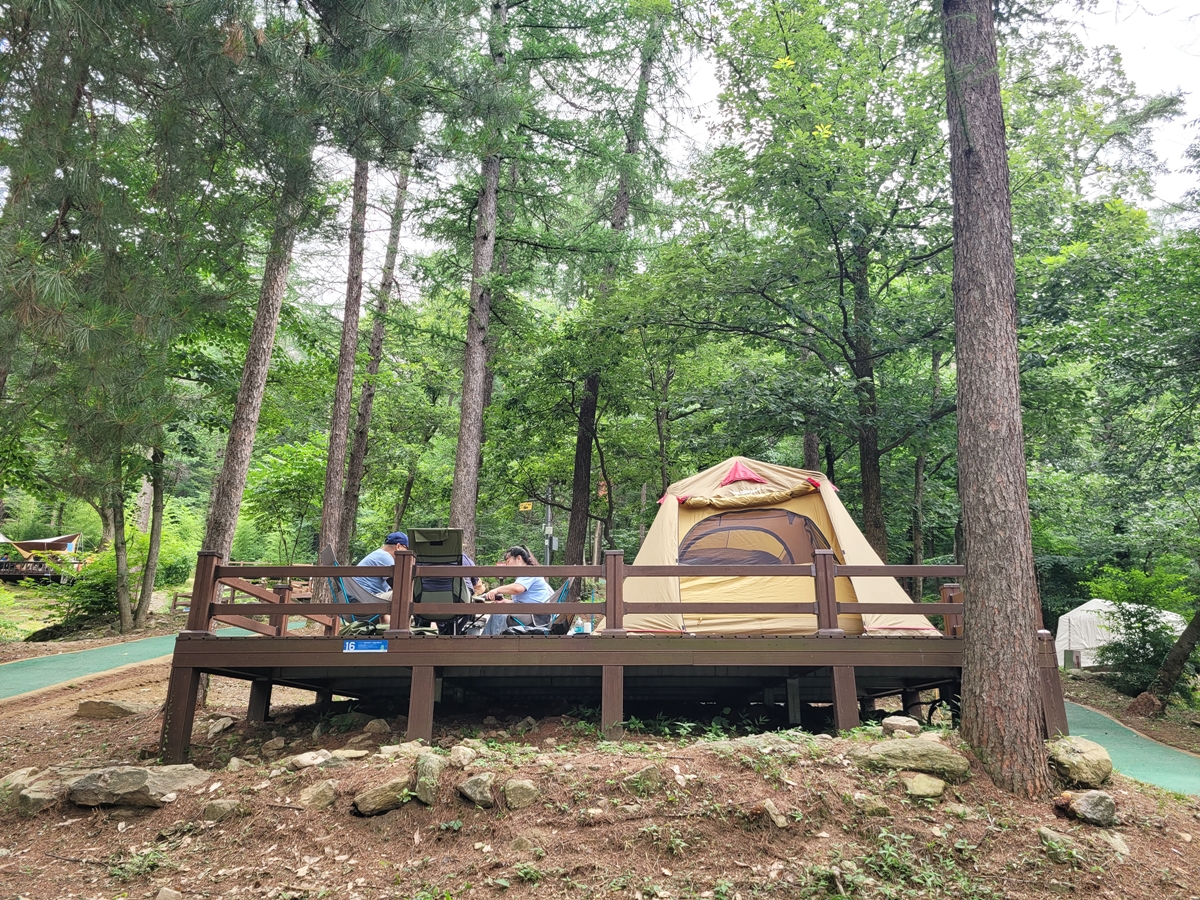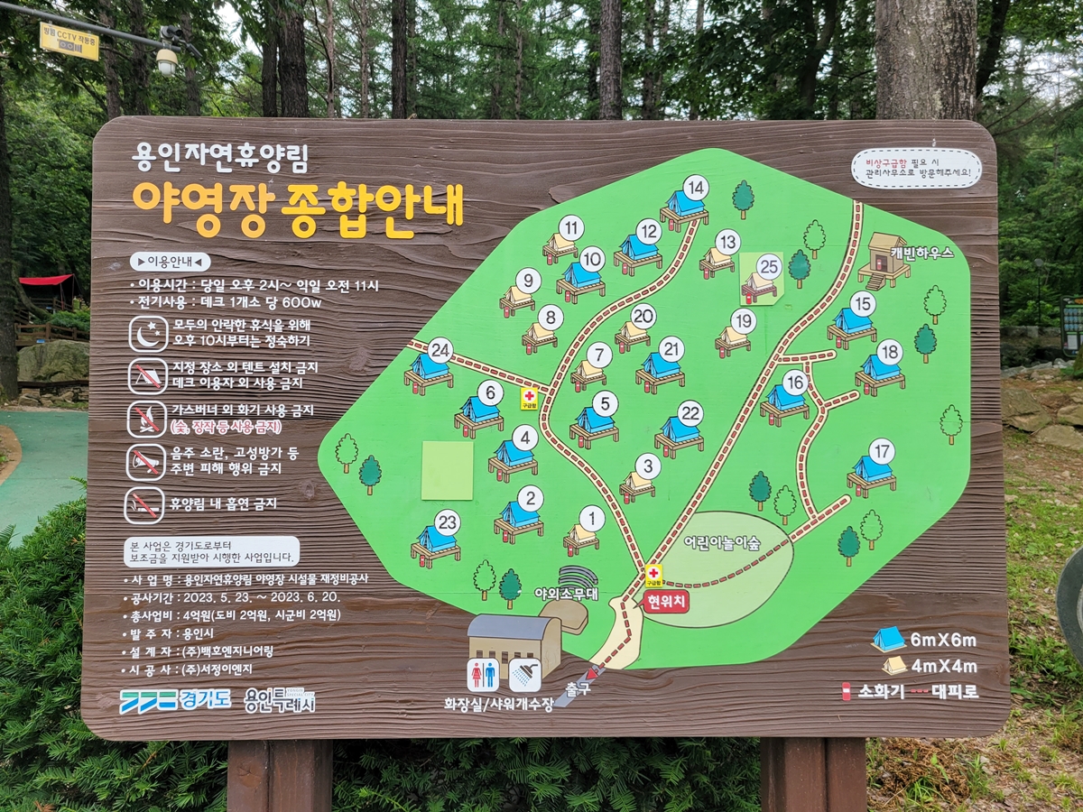 여름 하면 캠핑의 계절이죠. 야영장에는 많은 가족이 울창한 숲속에 텐트를 치고 자연과 한 몸이 되어 여유로운 시간을 보내고 있습니다. 야영장은 성수기 기준으로 하루 사이트 이용료가 25,000~30,000원입니다. (데크 크기에 따라 상이) 기준 인원은 4명이며, 용인 시민은 할인 혜택이 있습니다.