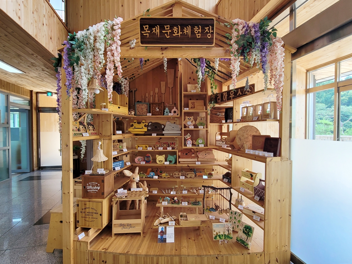 목재문화체험관 주요 시설은 목공예실과 목공예체험실, 도서실(북카페) 등입니다.