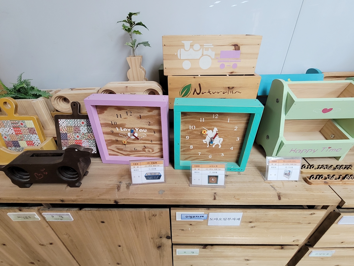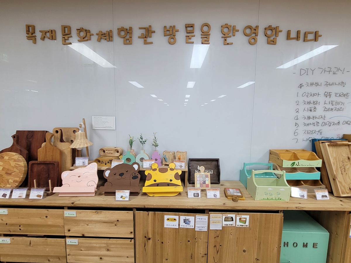 제가 갔을 때 한 가족이 목공예체험장에서 실습을 하고 있었습니다. 목공 실습을 도와주는 선생님 설명에 따라 아이와 함께 목공예 작품을 만들었는데, 세상에서 하나뿐인 소중한 작품이고, 체험하는 동안 아주 즐겁고 행복했을 겁니다.