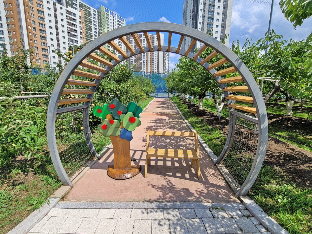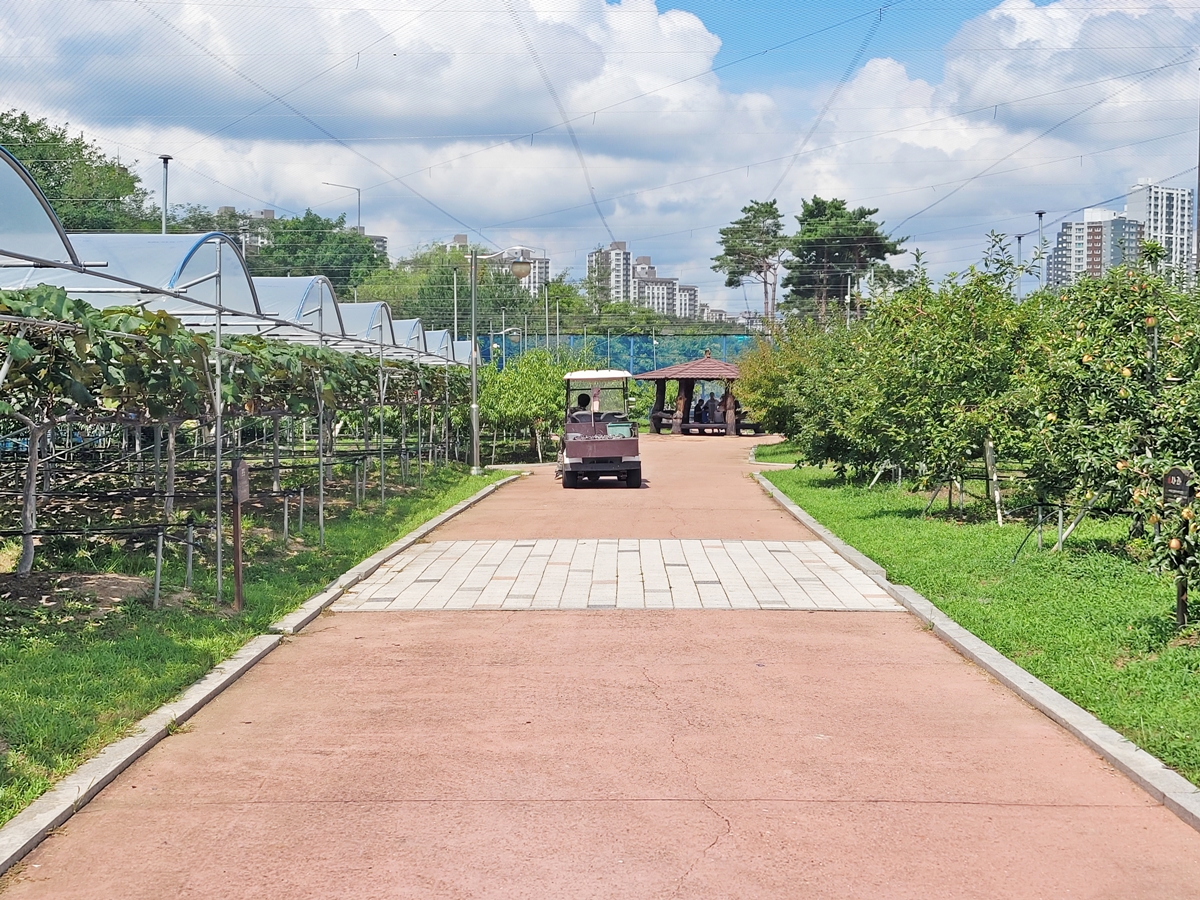 과수공원은 약 12,180㎡ 면적에 사과, 배, 포도, 매실, 체리 등 10여 종의 과일나무 850여 그루가 있어 웬만한 과수원 규모를 자랑합니다. 도심 속에서 과일나무가 가득한 풍경을 볼 수 있다는 사실이 놀랍기만 합니다.
