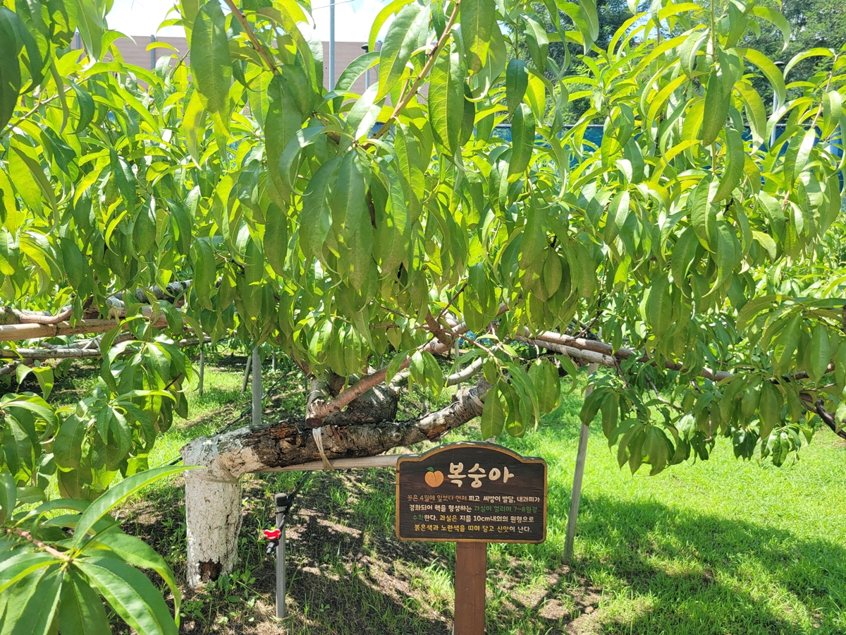 복숭아와 포도나무도 있는데, 수확 시기가 끝나 나무만 볼 수 있습니다. 과일나무마다 자세한 안내판이 있어 남녀노소 누구나 쉽게 과일의 생육 특징 등을 배울 수 있죠.