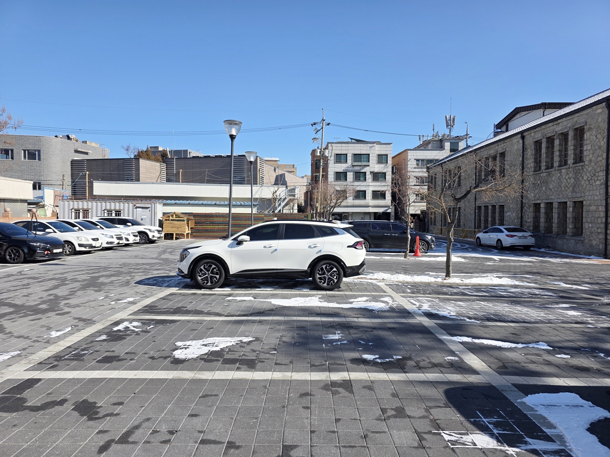 북수동성당 내부 마당에는 방문객과 순례자들을 위한 전용 주차 공간이 마련되어 있습니다. 바닥이 깔끔하게 포장된 야외 주차장으로, 여러 대의 차량을 수용할 수 있는 구획이 나누어져 있습니다. 휴일 종교 행사가 있을 때 만차일 경우에는 인근의 화성행궁 공영주차장을 이용하시는 것이 좋습니다.