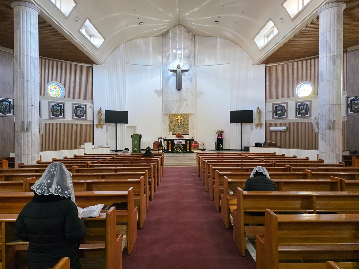 문을 열고 들어선 대성당 내부는 그야말로 경건함 그 자체입니다. 높은 천장과 양옆의 창문을 통해 들어오는 자연광이 나무 의자 위에 내려앉아 따뜻한 분위기를 자아냅니다. 제가 방문했을 때도 미사포를 쓰고 간절히 기도하시는 분들이 계셨는데, 그 뒷모습만으로도 숭고한 기운이 느껴졌습니다.